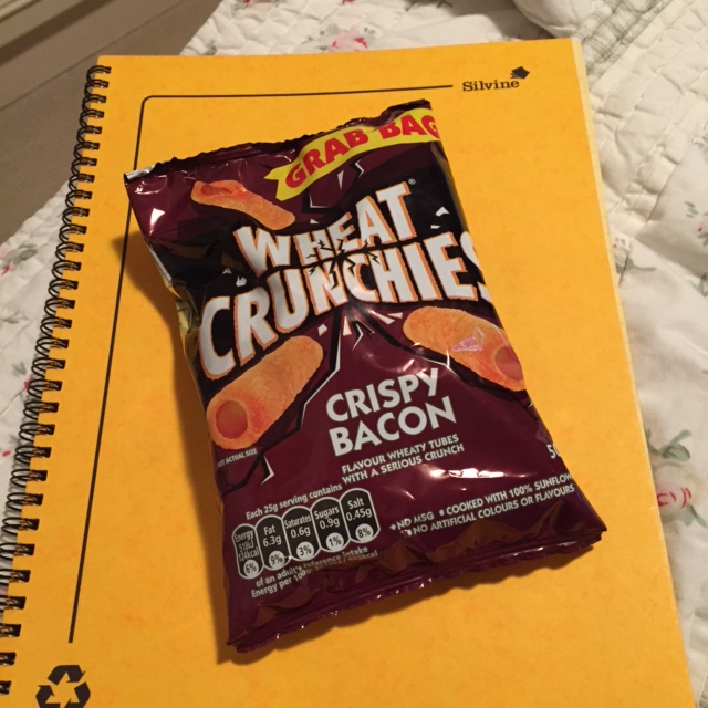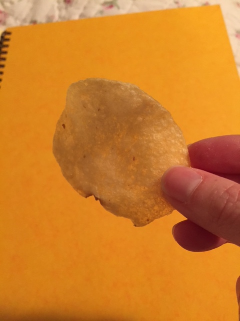First of all, what’s with junk food labeling here in the UK? The labels seem to include either extremely specific and uninspired descriptions (i.e. “unmistakably cheesy”) or pictures that suggest an entirely different density. Squares fall into the latter category. I thought these would be thicker, like little salt & vinegar crackers, which seemed kind of interesting. I thought maybe crackers would retain even more savory zing crystals than chips. Alas, these are pretty much chips squared, only in terms of the shape, not (salt + vinegar) 2
